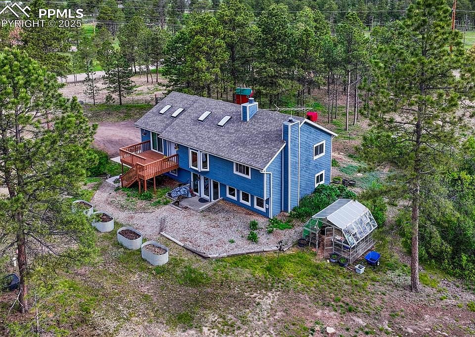 "A fantastic opportunity awaits to live your hobby farm / homestead dream on just over 4.5 pristine acres in the heart of Black Forest! This inviting 4-bedroom, 3-bathroom home features a convenient master on the main level and an open-concept living room, kitchen, and dining area with vaulted ceilings and a stunning tiled wood burning fireplace. Enjoy seamless indoor-outdoor living with walk-outs to both front and back decks. The bright & spacious finished walk-out basement is designed for comfort and entertainment, offering a 4th bedroom, laundry room, mudroom, and direct entry to the 2 car garage. Gather in the large family room, complete with a cozy wood-burning stove, new carpets, and surround sound wiring – perfect for movie nights and entertaining! The property has been meticulously cared for, with pine beetle inspection and extensive mitigation; All damaged trees have been thoughtfully removed. Mitigated trees have been shredded into mulch to feed the soil and prevent erosion around the property. One acre is already fenced for livestock or pets, complemented by several shelters for various small and larger animals. And for the green thumb, the greenhouse is fully ready for your growing season. This is more than a home; it's a lifestyle!"