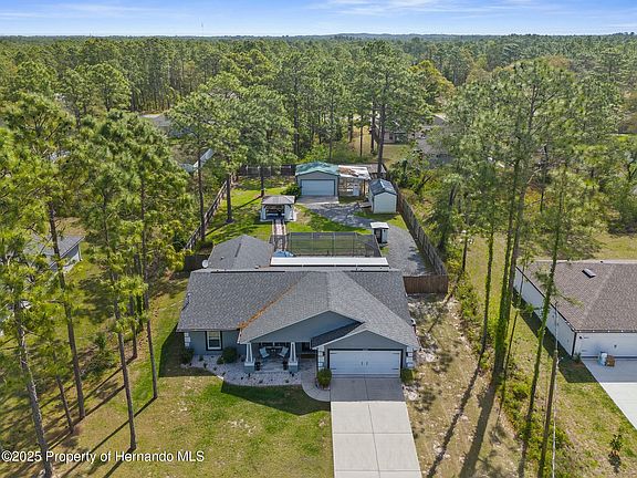 THIS ONE HAS IT ALL! STUNNING NEWER CRAFTSMAN POOL HOME!! Looks like something out of a magazine!! 4 bedrooms + 2 bathrooms + 2 car attached garage + 2 car detached garage (20x20) + private saltwater POOL all nestled on a gorgeous, manicured and landscaped + fenced 1/2 lot on a PAVED road in beautiful Royal Highlands + relaxing gazebo for entertaining + green house + covered garden area with watering system! Remote controlled power gate to the backyard makes it easy to drive in and out of the backyard...so bring your boat, camper, RV...bring it all!! Pool was built in 2021...so fairly new and in great condition with screened enclosure and brick paver patio!! The outdoor living space is like an oasis with the pool, large covered patio, and the winding p aver walkway tot he large outdoor gazebo!! Enjoy your nights outside!! Shows like a model home! every inch of this property is well maintained and meticulously cared for!! Open Floor Plan!! High Ceilings!! NO HOA!! NO FLOOD!! ALL BRAND NEW kitchen cabinets (42'' uppers and crown molding on top) and new kitchen backsplash! Gorgeous Quartz Countertops!! Ensuite master bathroom looks and feels like a spa retreat with large walk-in shower with frameless glass walk-in shower and dual sinks! Second bathroom has brand new gorgeous Quartz countertops and modern sink! New surround sound! Whole house water softener and filtration lot!! Why build when you can have it all in this one?! Looks brand new inside with all the modern luxury finishes!! Zoned for the county's newest schools Winding Water K-8 and Weeki Wachee High School! Located minutes from Publix and shopping! 15 minutes to the sunset at Pine Island, kayaking down the crystal clear Weeki Wachee River, swim with the manatees, fishing, paddle boarding...so many activities nearby! 1 hour to Tampa International Airport! 1+ hour to TOP US Beaches!! Shed excluded. It will be relocated before closing. Schedule you appointment to come see it today!!