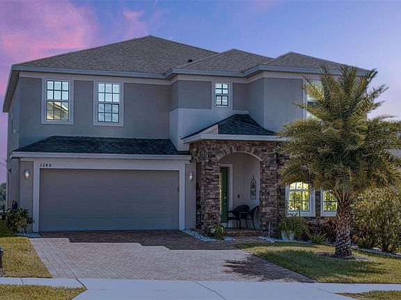 **Welcome to 1248 Cavender Creek Road!** This beautifully maintained 5-bedroom, 3-bathroom single-family home is nestled in the highly sought-after Ardmore Reserve community in Minneola, Florida. Ideally located just 30 miles west of Orlando and about 90 minutes from Tampa, the home offers easy access to world-famous theme parks and attractions. Plus, with the Florida Turnpike only five minutes away, commuting is incredibly convenient. Built in 2020, this residence features stunning curb appeal with stacked stone accents, a glass inset front door, and an extended paved permeable driveway. Inside, the home is meticulously kept and features tile flooring throughout the downstairs main living areas, luxury vinyl plank flooring in the front great room and staircase, and carpet in the downstairs bedroom. The elegant staircase, enhanced with unique vinyl plank design work, adds a distinctive touch of style. Step into a bright, open-concept interior designed for both comfort and sophistication. The modern kitchen is a chef’s dream, complete with a gas stove, 42-inch cabinets, quartz countertops, a generously sized island with detailed woodwork, and a convenient drop zone area—perfect for unloading groceries with ease. Stylish pendant lighting and updated stainless steel appliances enhance both beauty and functionality. On the main floor, a versatile flex space offers endless possibilities—ideal for a home office, formal living area, or creative studio. Unique woodwork throughout the foyer, kitchen, living room, and guest bedroom adds charm and character you won’t find elsewhere. This home features a bedroom and bathroom downstairs that is perfect for extended family or guests for ultimate privacy. Upstairs, a spacious loft/game room offers the perfect retreat for a home gym, man cave, or entertainment zone, it also includes three generously sized bedrooms and a luxurious primary suite , lastly there is Luxury vinyl plank floor throughout the upstairs minus the 3 bedrooms which have carpet and bathroom which feature tile. The primary bathroom is a spa-like retreat, showcasing quartz countertops, a beautifully remodeled walk-in shower with floor-to-ceiling tile and a sleek glass slider door, as well as a spacious walk-in closet. The primary bedroom is generously sized and features luxury vinyl flooring and added recessed lighting. The ensuite bathroom offers a his-and-hers vanity with quartz countertops, an oversized closet, and a stunningly tiled shower that exudes elegance and style—sure to impress.The garage is impeccably maintained, boasting durable and stylish epoxy flooring along with additional storage space behind a charming barn door.Step outside into your own private tropical oasis. The extended, screened-in lanai provides breathtaking views of **Plum Lake**, making it the perfect place to relax and soak in the Florida lifestyle.