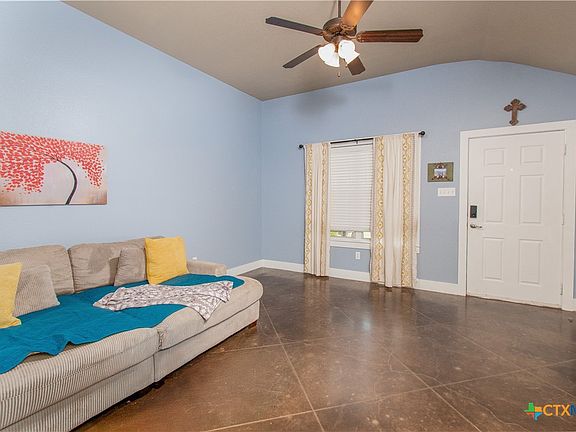 Charming and efficient 1-bedroom, 1-bath home in Temple offering low-maintenance living and a smart layout. The open floor plan features stained concrete flooring throughout and vaulted ceilings in the living area for an airy feel. The kitchen is complete with granite countertops, tile backsplash, and includes a refrigerator, microwave, and electric range. The spacious bedroom includes dual closets and connects to a full bath with a walk-in shower. Step outside to a private fenced backyard with a covered patio and ideal for relaxing or entertaining. Located near shopping, dining, and major roadways.