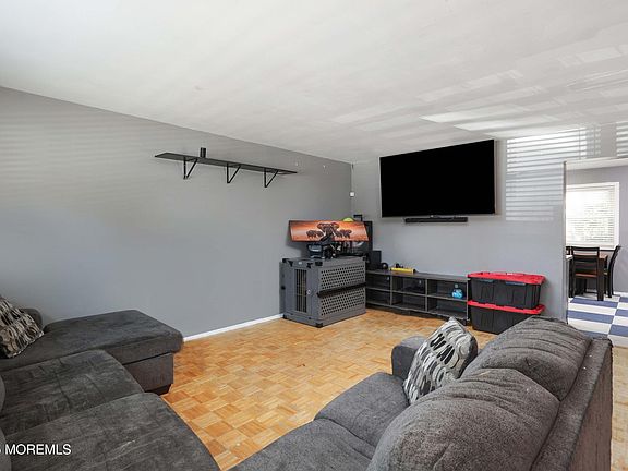 This townhouse boasts beautiful curb appeal, a brand-new HVAC system, and fresh paint throughout. The large living room features parquet floors, while the spacious eat-in kitchen offers a pantry and new stainless steel appliances. A convenient half bath is located downstairs. The finished basement provides two versatile living areas and a laundry room. Upstairs, you'll find two oversized bedrooms with double closets and vinyl flooring, connected by a Jack and Jill bathroom with a double vanity and tub. Enjoy outdoor living on the paver patio surrounded by trees for privacy. The community offers an in-ground pool, clubhouse, and basketball court, with immediate access to the Garden State Parkway and nearby shore attractions.