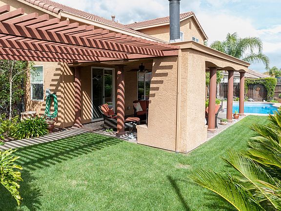 Absolutely beautiful house!! As you walk thru the formal entry door into the living room be prepared to be amazed in this Elegant, Beautiful, Contemporary, Spacious, and Model Home with the ceiling as high as 16 feet. These homes consist of 5 Bedrooms, 5 Bathrooms, 2 master suites downstairs and 3 bedrooms upstairs. Your family will enjoy the most amazing kitchen with granite countertops, cherry wood cabinet, hardwood floors, and a breakfast nook overlooking the family room with cozy fireplace. Custom drapes, custom fans, custom vanities throughout the home. Picture like back yard with a beautiful salt water pool with custom pergola build in with a fire place. Leased solar.