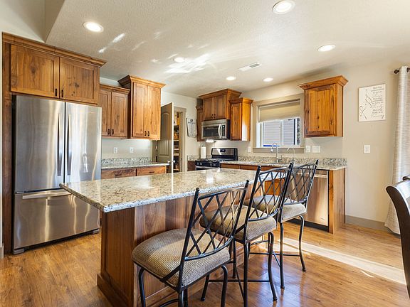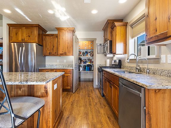 Welcome to comfort and quality. Custom cabinets, vaulted ceilings, granite counter tops, walk in pantry, laminate floors, large bedrooms, walk-in closet, no stairs, woodburning stove, water storage, RV parking, wood shop, grow shop, fenced yard, pergola, mountain views, and the list goes on.