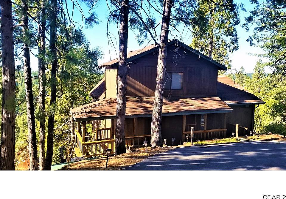 Super views off the rear deck! Very popular Blue Lake Springs chalet with vaulted knotty pine ceiling, open floor plan, large master bedroom on the main floor with patio glass door out to deck to enjoy the views. Down stares 2 bedrooms and full bathroom and a second deck to also enjoy the views. Upstairs is a loft great for extra sleeping and game room. The cabin is close to hiking and biking trails and a cul-de-sac at the end of the street.Blue Lake Springs HOA amenities offer 2 lakes, restaurant, rec center with tennis, pool and more!Are you ready for Mountain living and more?