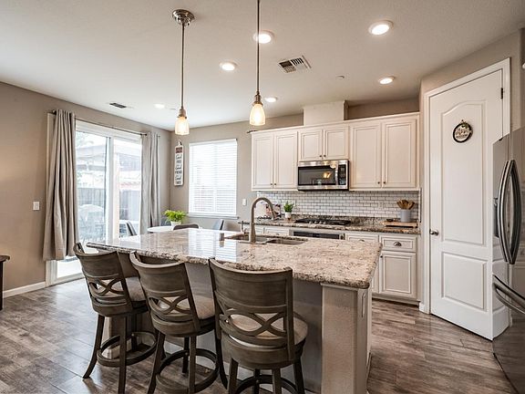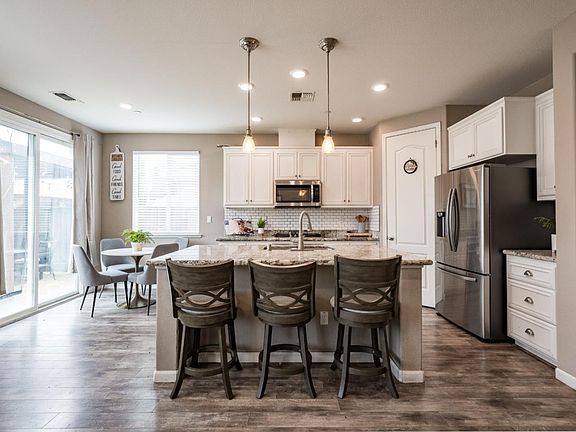 Welcome Home! This beautifully appointed 3-bedroom + den (used as a 4th bedroom) residence offers modern style and smart design in a highly sought-after neighborhood, just steps from the community park. The kitchen features granite countertops, stainless steel appliances, a classic subway tile backsplash, and a spacious walk-in pantry, all seamlessly connected to the open concept great room perfect for easy everyday living and entertaining.