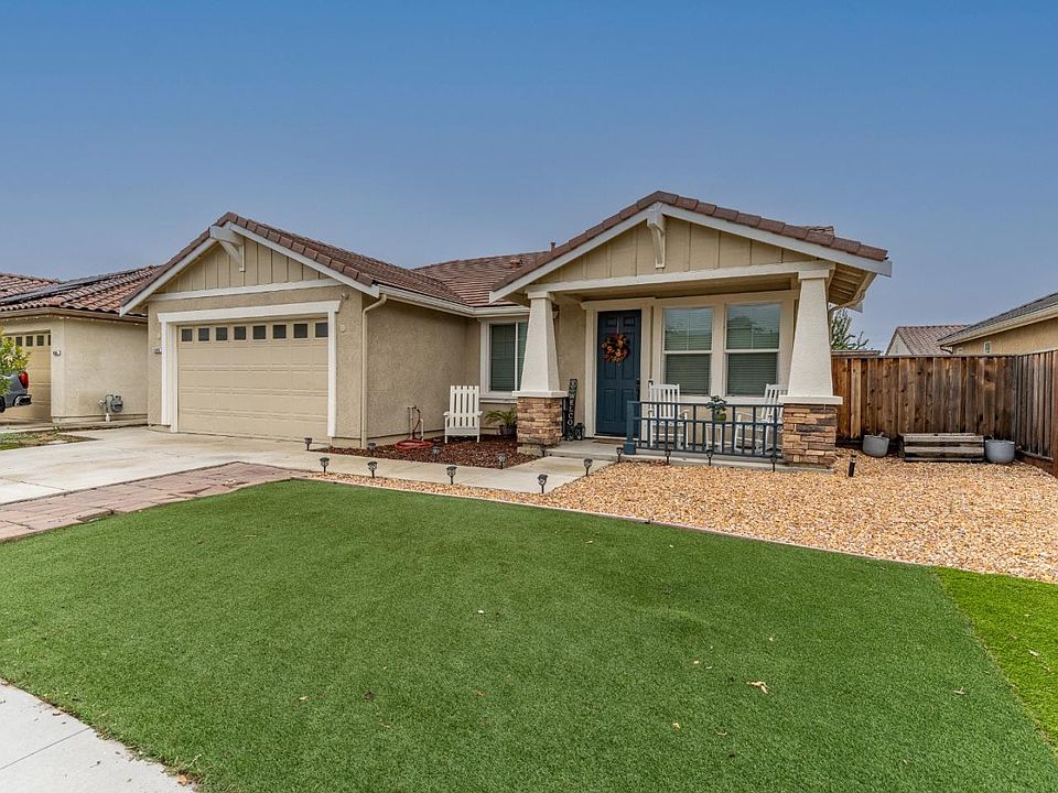Enjoy low-maintenance outdoor spaces with artificial turf in the front yard and decomposed granite in the backyard, ideal for relaxing or hosting without the upkeep.