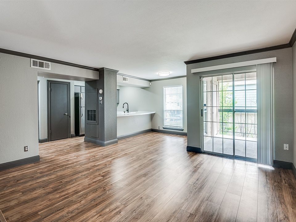 Modern updated 1 Bed Room, Second Floor Condo with all the amenities buyers are looking for in their next home. Updates include new plank floor thru-out, fireplace surround updated with modern tile, freshly painted & more. Bath has white tile with surrounding the bath-shower with adjustable shower head. Bedroom has large walk-in closet, Patio door opens the outdoor space for fresh air and sunlight. Central Air and Heat system; LED lighting thru-out; utility room with additional pantry-utility shelving. Access to 635 75 will get you anywhere quickly. Come see this AMAZING property. Creek Bend Condo is a highly desirable development near Richland College, Texas Instruments and International Battery. Do not miss this opportunity to own your own home. Seller is related to the listing agent. Assigned Parking B22; Agent is related to the seller.