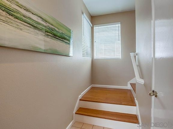 Beautifully kept 2 bedroom 2 bath townhome situated conveniently close to 15/56 freeways, shopping, restaurants, movie theaters & hiking trails! Light & bright with wood flooring throughout majority of the home. Spacious living room with fireplace opens to your 2nd story patio. Attached garage with maintained washer and dryer units. Large walk-in closet in master bathroom makes this home highly desirable. Poway Unified School District. Enjoy the beautiful grounds & pool area! Nothing to do but move in!