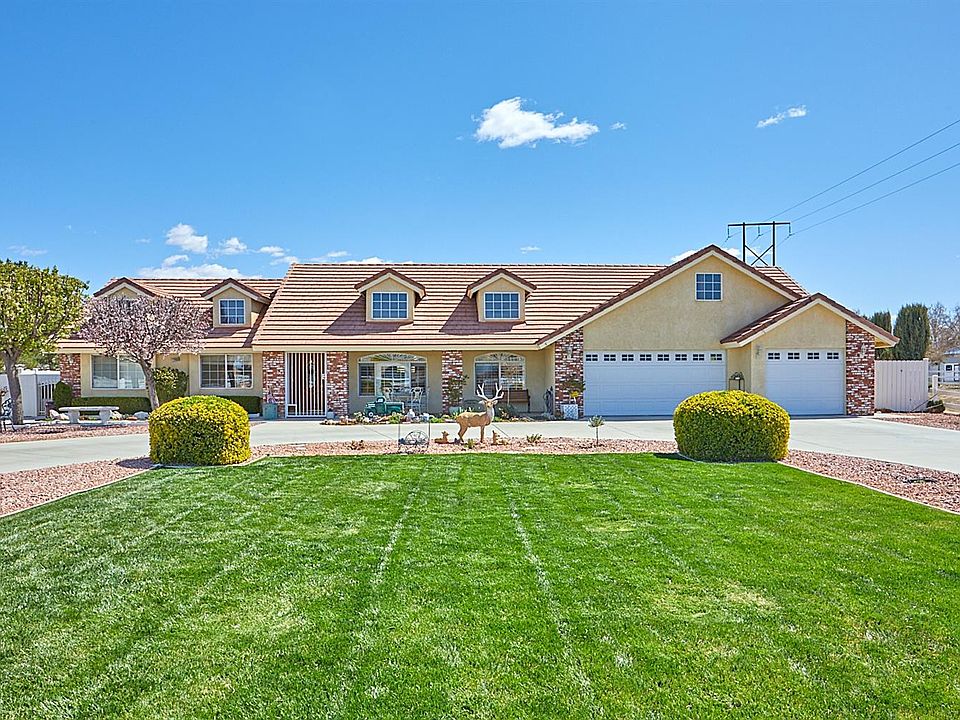 Home is located in the Equestrian area of Spring Valley Lake. New flooring. Kitchen opens up to a spacious family room with a fireplace, Large breakfast bar and walk in pantry. Adjacent to the kitchen is a formal dining room. Upon entering the home there is a living room but could be a reading room, or library as well. Three of the four bedrooms, feature walk in closets! The large master suite has a fireplace. Master bath has a separate shower. There is a laundry room adjacent to a half bath. Slider doors in the family room open to a beautifully landscaped back yard with 2 separate patios and a built in barbeque. There is a large storage shed with a matching tile roof, a fire pit, trees and all landscaping at the home is on an automatic watering system. There is RV parking with a sewer connection. Behind the shed there is a gated garden area. Dual heating and air conditioning systems. New electronic wrought iron gates. Mountain views.