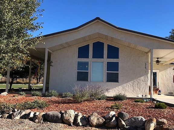 This lovely, roomy home is located on almost 10 irrigated acres with large hay field. There is no HOA or covenants. Plenty of room for horses or whatever your heart desires. Home is low maintenance with stucco siding, metal roof, central air, open concept with vaulted ceilings. Primary has jetted tub, shower and walk-in closet. There is an attached 2 car garage plus 30X40 metal shop. Beautiful views of the Grand Mesa and Mt. Lamborn. Mature trees, landscaping, fruit trees and approximately 900' of gated pipe.