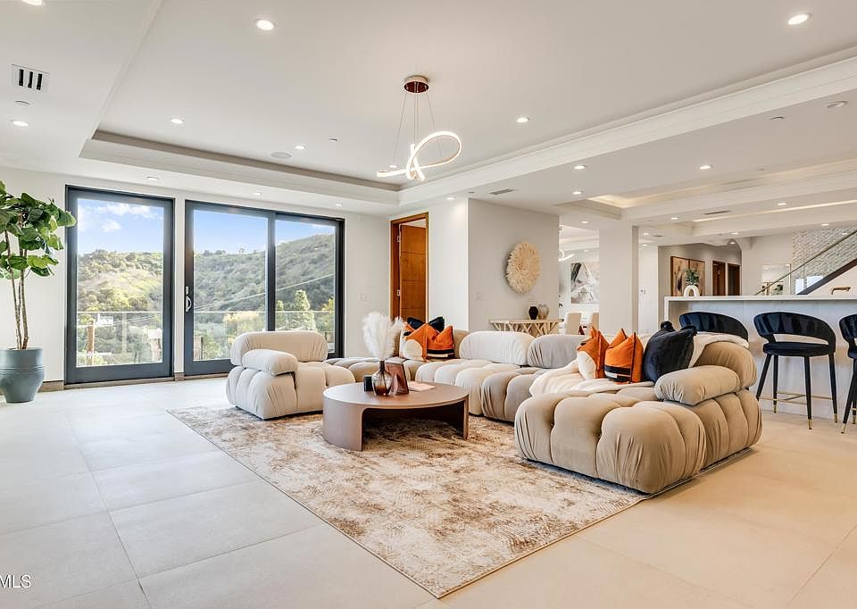 Located in the coveted Silver Triangle of Studio City, this private three-level luxury home offers over 5,000 sq ft of living space with 5 bedrooms and 7 bathrooms. The home features an open lower level with a chef's kitchen and spacious living area, ideal for entertaining. The primary suite is a true retreat, offering stunning 270-degree valley and mountain views, a private balcony, and a spa-style bathroom. Enjoy multiple outdoor patio spaces, a large private entertaining area, home gym, ample storage, and room to add an elevator. A two-car garage with long driveway provides convenience and privacy. Just minutes from Fryman Canyon trails, this exceptional home combines luxury, privacy, and a prime Studio City location.