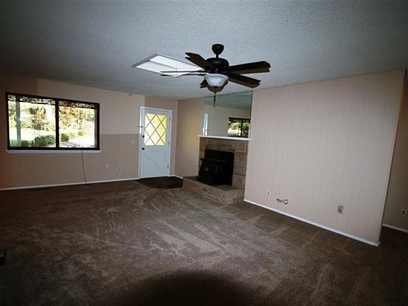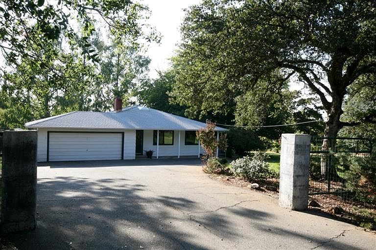 Enjoy this park like setting on two usable acres. Property is completely fenced with a detached fun room with bar, green house, propagation house, pond, orchard and vegetable beds. A charming two bedroom, two bath home with an open floor plan, new carpet, new interior paint, fireplace, ceiling fans, skylights, soaking tub, new vinyl siding covered side deck and uncovered deck, automatic sprinklers and attached two car garage. Also a detached 2000 ft garage with full power added after this sale.