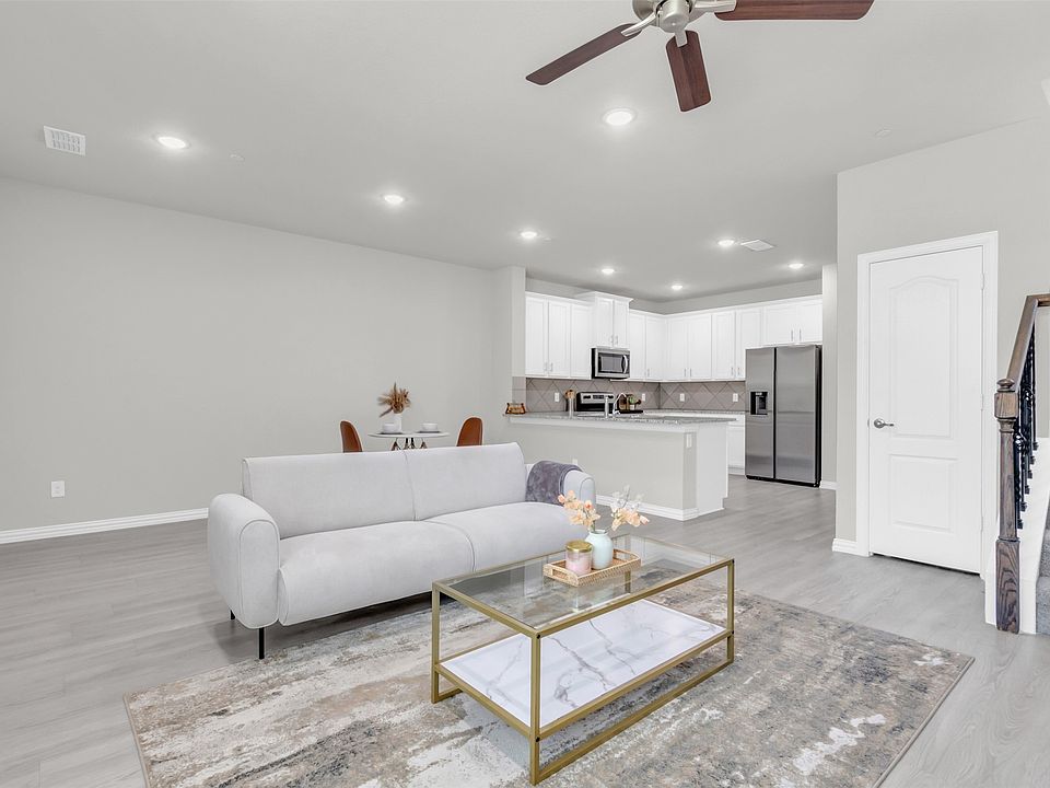 Like NEW under 350k with a great location. Come fall in love and make an offer. Step inside and be greeted by an abundance of natural light pouring in through the generous number of windows throughout the home. The open-concept floor plan creates a seamless flow from the living area into the beautiful kitchen, where you’ll find sleek modern appliances, a spacious granite countertop, and an abundance of cabinet and pantry space for all your culinary essentials. A built-in reverse osmosis drinking station and a whole-home water softener system elevate your everyday living, and the refrigerator is thoughtfully included with the home. An epoxy coated garage offers added luxury with its polished, durable finish and a well appointed powder bath is perfectly situated on the first level for your guests.