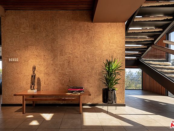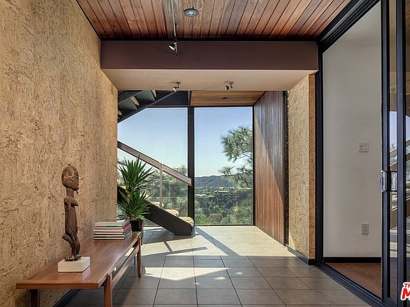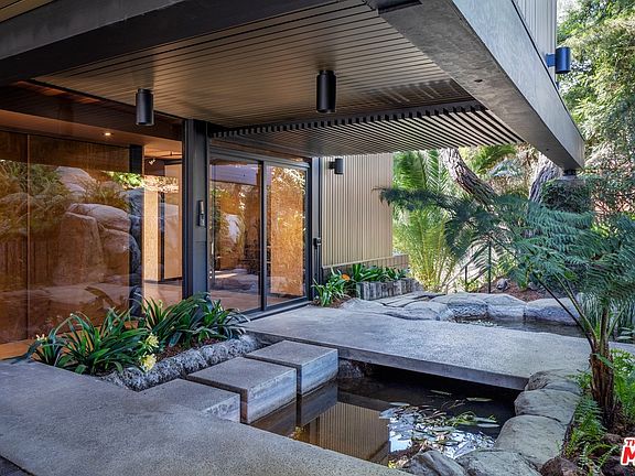"Franks House" by Raul F. Garduno, 1966. Nestled among the treetops in prime Crestwood Hills, this exquisite & historic architectural home has been meticulously maintained.Walls of floor-to-ceiling glass & jetliner 180 degree views of the Pacific await, w/ an abundance of original details throughout including American redwood paneling & period cork walls. A cascading waterfall & Koi pond welcome you to the foyer, w/ access to an en-suite guest bedroom, bthrm & private office. The living area boasts a fireplace, upgraded kitchen, soaring ceilings & sweeping views of the canyons & coastline. Enjoy a dining area w/ a wet-bar & sliding glass doors that lead to an inviting outside terrace. The master includes a spacious bdrm w/ fireplace & patio w/ head-on views of the ocean.A spa-like bthrm includes dual vanities, jacuzzi tub, sauna & large walk-in closet. A rare opportunity to purchase a significant property rich in architecture & history, in one of Brentwood's finest neighborhoods.