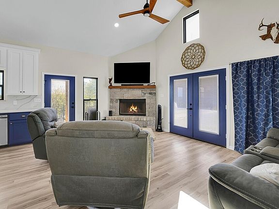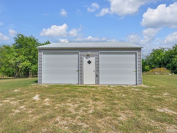Discover peaceful country living in Moody ISD! Nestled on 6 beautiful acres, this charming home offers the perfect blend of comfort, function, and rural tranquility. With 837 sq. ft. of living space plus a versatile loft (not included in square footage), this thoughtfully designed property lives large. Inside, you’ll find an inviting open floor plan with luxury vinyl plank flooring throughout. The living room features large windows, French doors leading to the carport, and a stunning stone wood-burning fireplace that serves as the focal point of the space. The kitchen is both stylish and practical, offering a stainless double sink, electric range, dishwasher, built-in microwave, pantry, storage closet, and a movable island that can be rearranged to create space for a breakfast table. The primary bedroom offers patio access with a peaceful view of the back acreage. The primary bath includes dual vanities, built-in shelving, a tiled shower with bench, a walk-in closet, and a laundry closet with room for a full-size washer and dryer plus hanging space. Pull-down stairs provide access to the loft area, perfect for guests or additional storage. Enjoy outdoor living on the covered back porch overlooking the manicured acreage and a seasonal creek that runs along the rear of the property. Additional features include a two-car garage or workshop and a three-car detached carport, both with electric, providing plenty of parking and workspace. Flood light with switch at back porch makes entertaining outdoors a breeze. Whether you’re seeking a serene retreat or a practical homestead, this property offers the ideal combination of comfort and countryside charm. $399,000