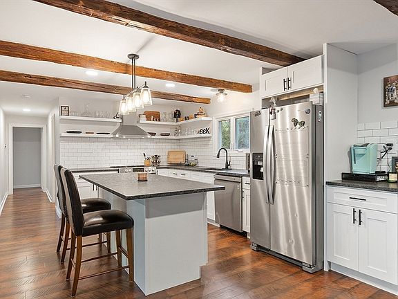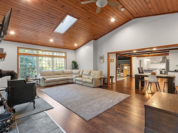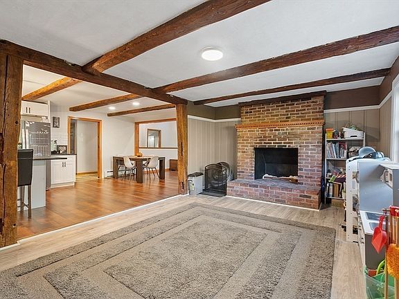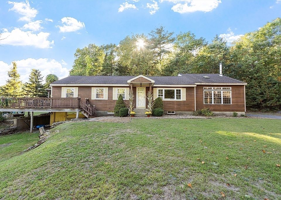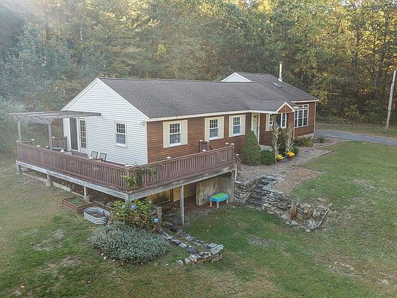 Buyers got cold feet! Don't miss your second chance! This charming two-bedroom(feels like3), two-bathroom ranch style home sits on approximately 1.5 acres of private land. The home features a welcoming living room addition with skylight windows filling the room with natural light and a wood burning stove, creating a warm and inviting atmosphere. The updated kitchen has modern appliances and finishes, ensuring functionality with plenty of counter space. Two good size bedrooms with an abundance of natural lighting are right down the hall and a bonus room provides additional flexibility, enabling you to tailor the space to your preferred use for an office, nursery, playroom, or mudroom. Two FULL baths make this home convenient for everyone. First floor laundry. The private lot offers a serene setting with a partial wrap around porch to relax on with coffee in the morning or BBQ with friends and family. A cozy fire pit for summer/cool evenings just adds to the charm of this home.