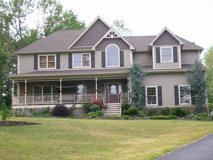Gorgeous Colonial! Reputable builder's own home, fully loaded with many upgrades and amenities, Pella tilt-in windows, gourmet kitchen with maple cabinets and granite counters, master suite with his and hers sinks and whirlpool tub, oak floors, ceramic tile, 2 story family room with overlook, dramatic 2 story stone fireplace, 2 story foyer, 14x36 deck, rocking chair front porch, 3.4 acres with level yard in Goshen SD. Private yet close to shopping, schools, major highways, easy commute to NYC.