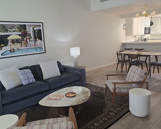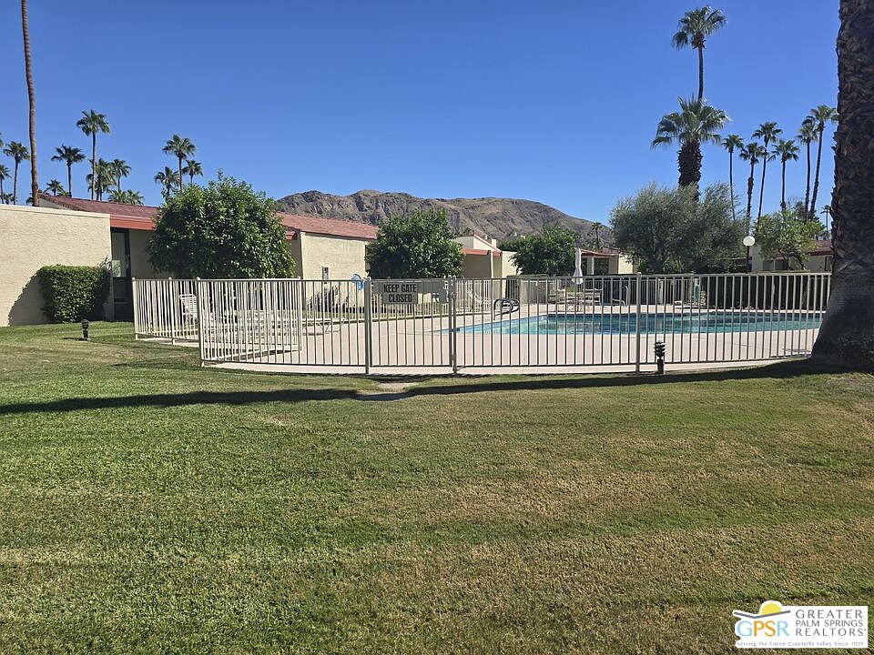 Seasonal rental--months available Oct/Nov 2025 @ $3500/mo, Jan thru Mar 2026 @ $4500/mo, May-June 2026 at $2500, Sep 2026 at $2500. This turnkey furnished 2bed/2bath 1325 sq ft condo is your PERFECT Palm Springs getaway in a beautifully maintained community. Open floor plan flows seamlessly from great room to pool side view patio (just steps from community pool/spa) that also offers wonderful mountain views. Both the great room and the primary bedroom have sliding lass doors leading to this patio. Condo is all on one level with 1 car garage plus dedicated open parking spot steps from front door and front patio. Visitor parking spots steps from this condo also available. There is also a laundry room equipped with full size Washer/Dryer units. All this with an unbeatable location in South Palm Springs, minutes from downtown. Easy access to shopping, dining, hiking trails, golf and valley entertainment. NO PETS ALLOWED. Tenant pays combined elec/gas usage over $250/mo. Rental comes with cable TV,internet.