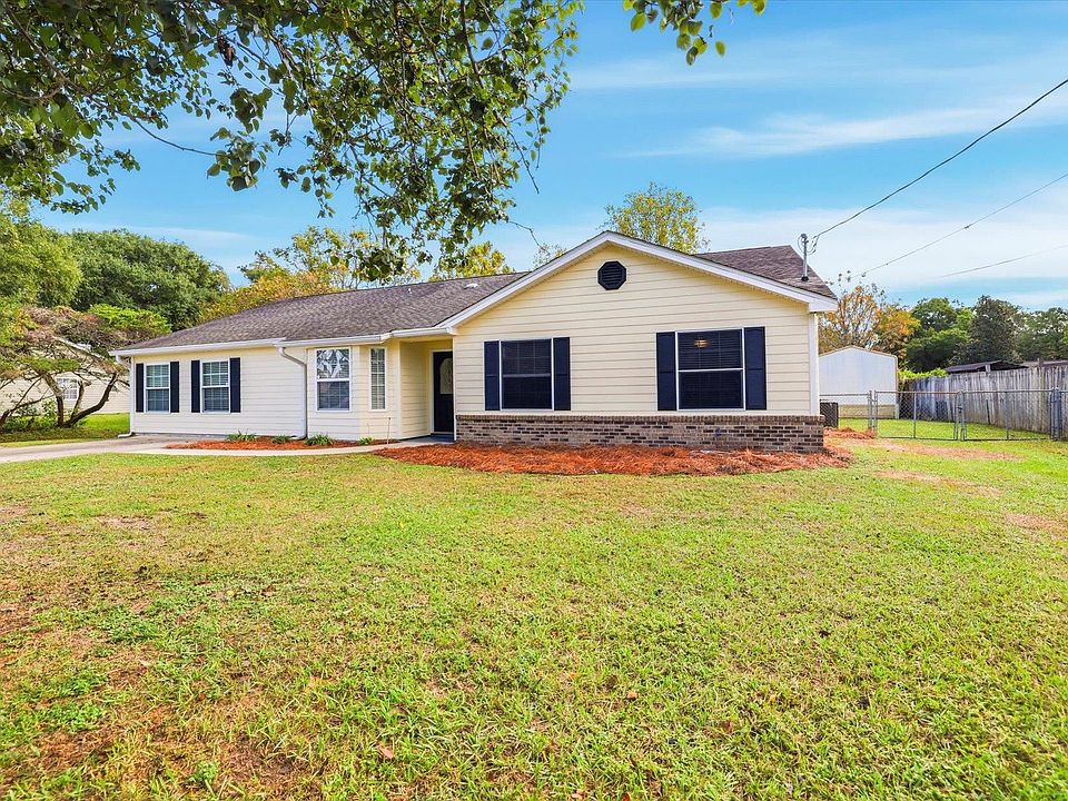 Spacious 5-bedroom home in the Buck Lake area! Every room feels open and inviting — from the foyer to the kitchen, living, bedrooms, walk-in pantry and laundry with cabinets, shelving, and a folding table. Fiber internet for screaming fast streaming. Features new HVAC, water heater, NEW windows, and flooring. Wired for 30amp generator with throw switch for all your storm needs. The double-split floor plan gives everyone their own space, with exposed beam ceilings and a cozy fireplace. Enjoy a fenced backyard, screened porch, shed with power, and a pole barn for your boat or camper! Minutes to Buck Lake, Swift Creek, Alford Arm Greenway, Eastside Library, Pedrick Park, Costco, and Publix. This home truly combines function, comfort, and style — ready for you to move right in and make it yours!