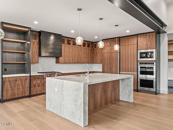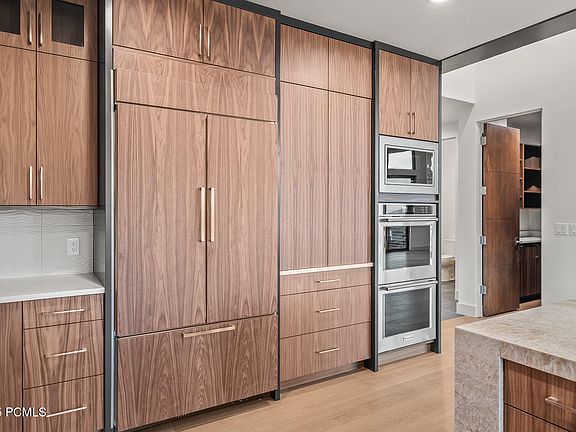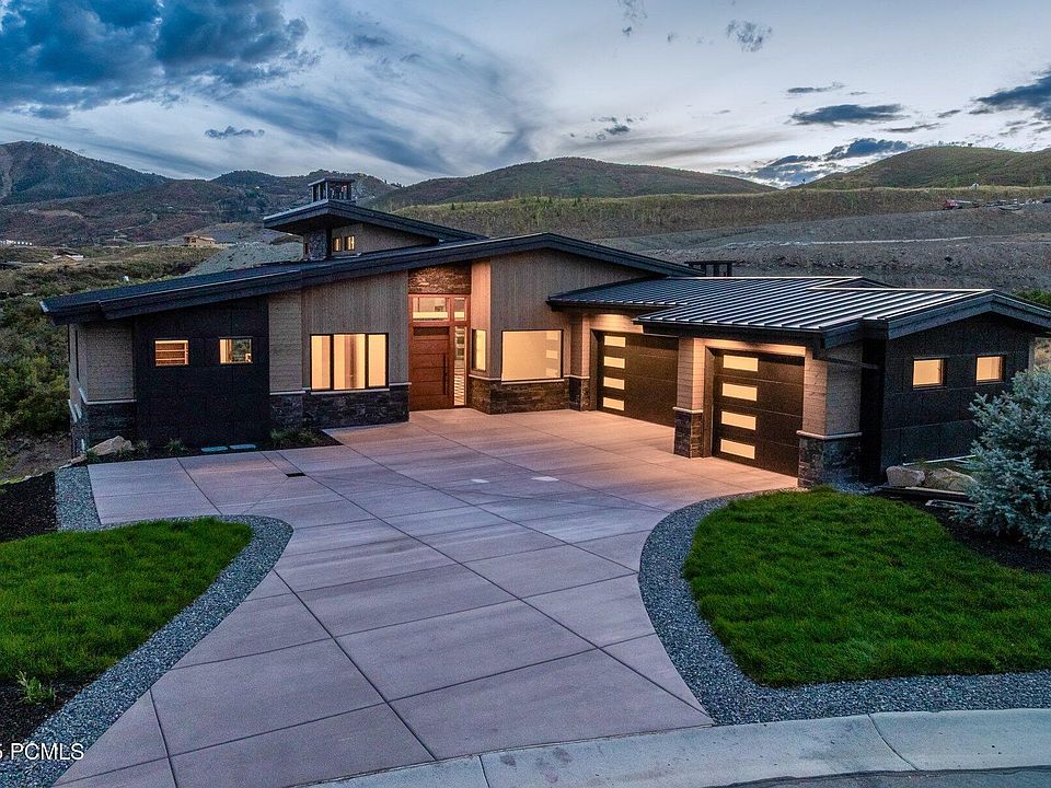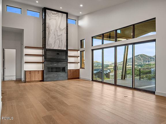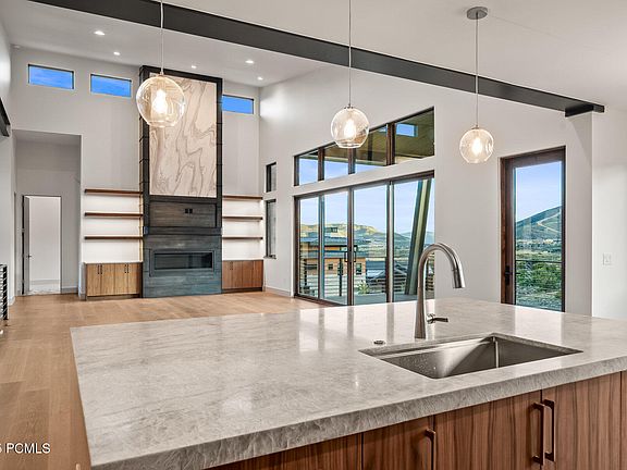 On a private ridge in the SkyRidge community of East Deer Valley, this exceptional custom home captures mountain living in the Park City area. Expansive windows frame the stunning Deer Valley® landscape, while warm, modern interiors blend luxury and ease. A place to gather, unwind, and create lasting memories. Recently completed, this stunning custom-built 4-bedroom + office, 4.5-bathroom residence offers a rare blend of timeless design and modern mountain living. Meticulously designed to highlight breathtaking views of Deer Valley Mountain Resort, every element of this home prioritizes comfort, quality, and connection to the outdoors. The main level welcomes you with a spacious great room centered around a striking marble and metal fireplace surrounded by custom shelving, flowing seamlessly into a chef's kitchen outfitted with custom cabinetry, leathered granite countertops, and a walk-in pantry. Expansive windows capture sweeping mountain vistas, while a large deck offers the perfect space for outdoor dining, entertaining, or quiet retreat. The main-level primary suite features a limestone fireplace, spa-like bathroom with soaking tub, dual vanities, oversized glass shower, and a walk-in closet with its own laundry. Just off the suite, a private office offers flexibility for work, reading, or creative pursuits. Additional main floor features include a separate laundry room, mud room area, and a beautifully designed powder bath. On the lower level, a spacious bar and game room create an inviting space for entertaining. Three guest suites—each with its own en-suite bath—provide privacy and comfort for family and visitors. This level also includes ample storage, a guest laundry closet, and access to a private walk-out patio. As a SkyRidge resident, enjoy exclusive community amenities including a par-3 golf course, clubhouse with pools and fitness studio, equestrian center, café, bar, and on-demand shuttle service to the Deer Valley Gondola. Just minutes from the new Deer Valley East Village, world-class skiing, dining, and outdoor adventures are always within reach.