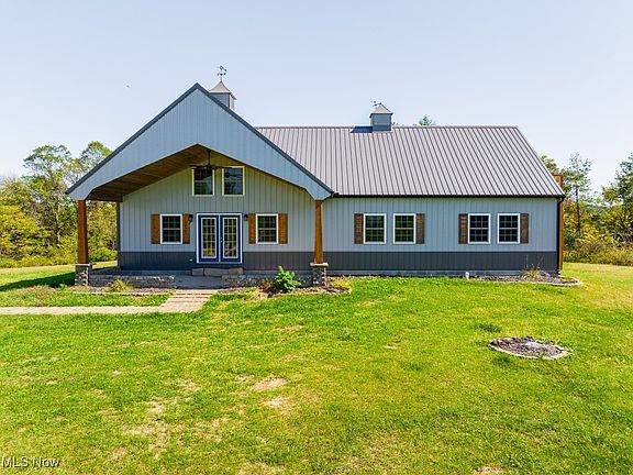 Newly listed in Adamsville, OH, this secluded 20-acre country estate offers a perfect blend of open pasture and wooded acreage—ideal for a dream farmette or whitetail retreat. The 3-bedroom, 3.5-bath home features rustic charm with cathedral ceilings, a fireplace, and a spacious living/dining area that flows into an eat-in kitchen with concrete countertops and a breakfast bar. Two main-floor bedrooms each have full baths, and an upstairs suite includes a full bath with a tub and a private balcony. Step outside to enjoy a deck and expansive backyard, plus a 28x32 three-car garage and a 30x64 pole barn with a 10 ft. lean-to—perfect for livestock or storage. With stunning views, this property offers homestead potential or a peaceful Airbnb escape.