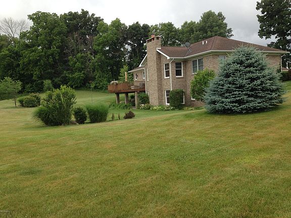 Awesome 40 Acre property with Gorgeous pine trees, Beautiful wooded areas, Breath taking scenery and Wildlife galore. This 2004 one owner home is an all brick walk out ranch featuring 3 BR's, 2.5 BA's, a ML master wing complete with walk in closet, bathroom with double vanity, separate tub and shower. Great room with gorgeous wood cathedral ceiling and stone fireplace. Large eat in kitchen has built in desk area, pantry, island and lots of cabinets for the cook at heart. Brand new maintenance free deck off the dining area with spectacular views. LL has a family/rec area with wet bar, wood burner, pool table, and patio area with waterproof ceiling. ML laundry, 3 car garage and a 2 room carriage house for extra storage. Automatic generator, 10 zone sprinkling, gun vault, R/O, & so much more!