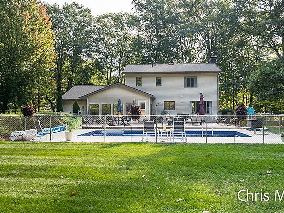 Welcome to 12495 Lakeshore Drive - A Rare Opportunity! Proudly offered for the first time, this immaculately maintained 4-bedroom, 4-bathroom traditional two-story home sits on a beautifully landscaped 1-acre lot in a peaceful, park-like setting. With over 3,100 sq ft of finished living space, this home is designed for comfort and functionality across all levels. The main floor features a spacious living room with a cozy fireplace, a formal dining room, and an updated kitchen with newer appliances and a breakfast nook. An inviting 4-season room with heated floors opens onto an expansive deck, perfect for entertaining, and overlooks the sparkling pool with a brand-new liner and updated mechanicals. Upstairs, you'll find three generously sized bedrooms, including a private master suite and additional full bath. The finished lower level includes a warm and welcoming family room with a fireplace, a fourth bedroom, a half bath, and a large storage area. Additional highlights include: a 2.5-stall attached garage (25x25), an insulated outbuilding with a cement floor & heater - ideal for hobbies, storage, or a workshop. Abundant deep closets throughout the home. New roof (2022) on home and outbuilding. New furnace & hot water heater (2024), New septic system (2022), New pool liner (2025), Updated appliances. Enjoy close proximity to Rosy Mound Natural Area, Kirk Park, Buchanan Beach, and the renowned American Dunes Golf Club. This home offers the perfect blend of privacy, space, and access to nature and recreation. Don't miss your chance to own this exceptional property, schedule your private showing today!