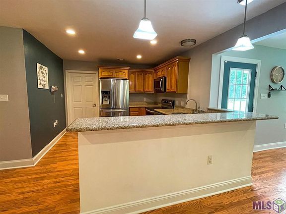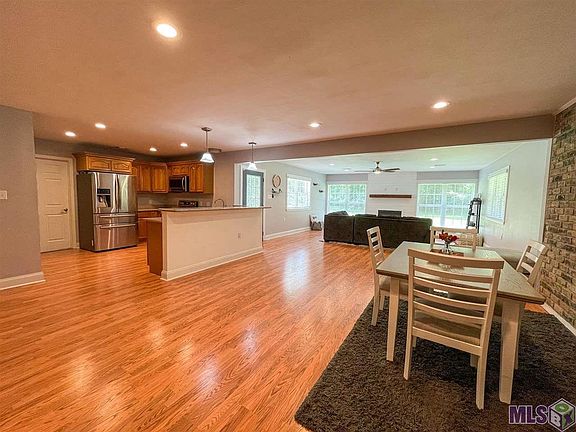 CENTRAL SCHOOL DISTRICT with 3.99 ACRES. Renovated in recent past, this 4 bedroom 2 bath home has all the newer things...ROOF, HVAC, HOT WATER HEATER, WINDOWS, cabinets, granite countertops, flooring, electrical, lighting, spray foam insulation, and Samsung appliances. Large open entertaining floor plan with newly added accented shiplap wall around fireplace and mantle. Custom tile shower in master with handicap entry and built in seat. Hall bath custom tile as well. Varied fencing and GATED access entry. 22 x 34 WORKSHOP on slab with power, large double bay doors, and metal roof. Flood insurance is required.