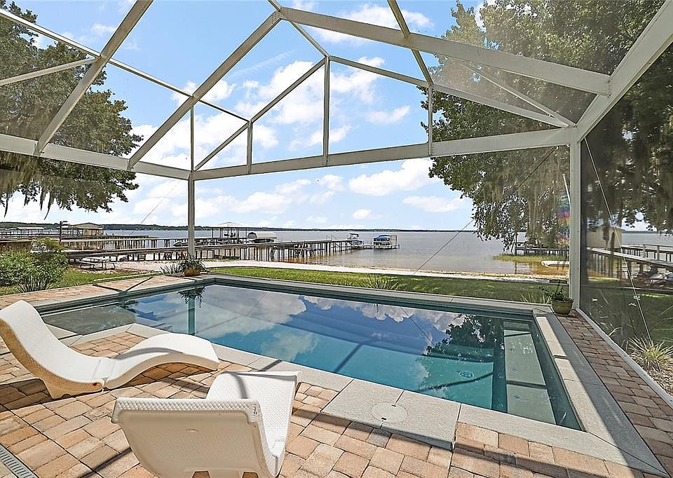 Waterfront Paradise on Big Lake Weir – Main House, Guest Cottage, Pool, Steel Building, Boathouse and More. Welcome to your dream lakefront retreat on the sparkling shores of the coveted North Shore. This one-of-a-kind property offers timeless charm, versatile living spaces, and breathtaking water views—all nestled on a beautifully maintained 0.72-acre lot with direct lake access. At the forefront of its many features is a detached steel building—ideal for storage, a workshop, or keeping all your lake toys and equipment secure and organized. The main house, built in 1963, features two bedrooms and one bathroom, with a cozy, light-filled interior that opens seamlessly to over 1,300 square feet of an outdoor screened entertainment space.This outdoor area is the heart of the home, featuring a covered lounge with an outdoor kitchen and a screened pool. Whether you're hosting friends or enjoying a quiet morning, the panoramic lake views from this spot are truly breathtaking. A separate guest cottage, built in 1953 and recently updated offers two additional bedrooms, one bathroom, and a kitchenette. The guest house includes an enclosed porch patio, providing a cozy, quiet space to relax with a sense of privacy. Whether used for extended family, visiting guests, or potential rental income, this cottage adds both charm and functionality to the property. This home is designed for true lakefront living, featuring a private boathouse with a lift, a separate lower-level boat lift, a spacious two-story dock with an upper-level sun deck, and 2 floating docks designed for jet skis. The lake lifestyle is at your fingertips—boating, swimming, fishing, or simply soaking in the sunrise or sunset over Lake Weir. An appraisal has been completed by the sellers, and the property is offered fully furnished, making it move-in ready. Call to schedule your showing today!