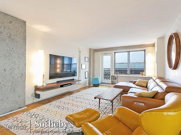 The large and airy Living Room, with exposed concrete beams, has its own spacious balcony perfect for entertaining, with sweeping views of the Meadows, Willow and Meadow Lakes and the National Tennis Center. Adjacent is the large and very bright Dining Room.