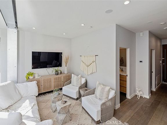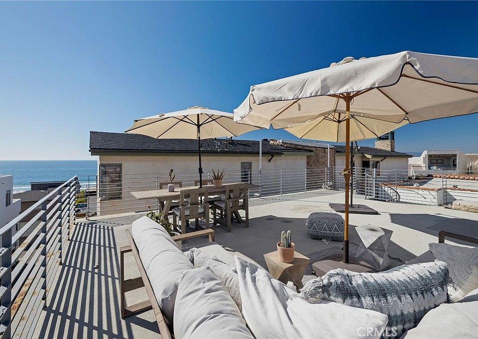 Welcome to a unique opportunity in Manhattan Beach’s coveted Sand Section. This contemporary coastal residence is awash in natural light, with dramatic walls of glass that invite ocean breezes and sunshine into every corner. Inside, wide-plank hardwood floors set a sophisticated tone for the spacious two-bedroom layout. The designer kitchen features white European-style cabinetry, blue-gray granite countertops, and premium Bosch stainless steel appliances—ideal for everyday living and entertaining in style. Retreat to the primary suite with its walk-in closet and ensuite bath, complete with marble countertops. A striking spiral staircase leads to an expansive 681-square-foot south-facing rooftop deck—your sun-drenched oasis above the coast with ocean and pier views, the perfect setting for outdoor dining, relaxation, or sunset gatherings. Additional highlights include sleek electric shades in the main living area, crisp Sonos sound throughout, a six-camera surveillance system with remote monitoring for added peace of mind, a separate laundry room with ample storage, and two individual garages—a major advantage where parking is at a premium in the Sand Section. This exceptional property presents options for full-time residency, a luxurious weekend getaway, or a profitable investment at a fraction of the price typically found in comparable 100-block locations within one of Southern California’s most desirable beach communities.