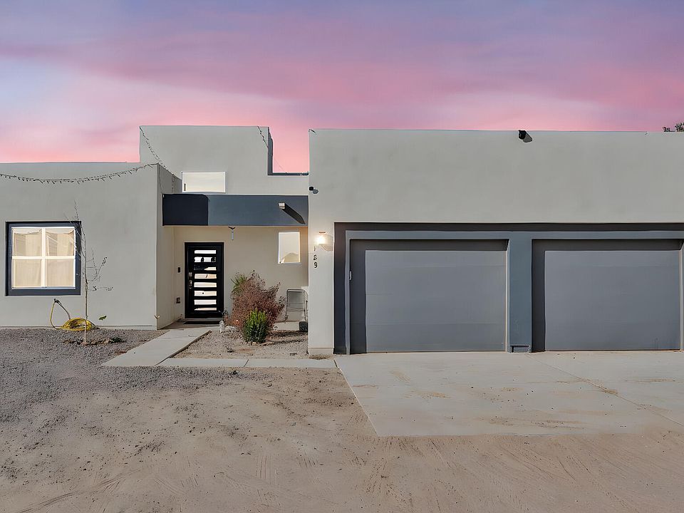This stunning custom home, thoughtfully built in 2023 on a half-acre, welcomes you with a bright, open floorplan and an expansive kitchen island ideal for entertaining. The spa-like main bathroom showcases a standalone tub and his-and-her sink vanities, complemented by generous walk in closets. Step outside to a huge walled backyard framed by unforgettable sunset views.The perfect gift for the holidays!!