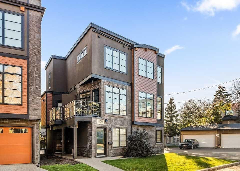Step into timeless sophistication in the heart of Parkhill, one of Calgary’s most coveted inner-city communities. This executive three-storey end unit blends modern design, refined finishes, and an unbeatable location steps from Stanley Park. Enter via the private front door or directly through the attached garage. The ground level opens to a bright, versatile flex space - ideal for a polished home office, fitness area, lounge or extra storage. A full paint job and thoughtful details set an elevated tone from the moment you arrive. Sunlight pours across the open-concept main living floor, offering hardwood floors and lofty ceiling heights. The gourmet kitchen features ceiling-height cabinetry - including dedicated pantry cabinets for small-appliance storage and overstock, quartz countertops, a sleek metallic designer backsplash, and stainless steel appliances with a gas range. Walk out to a private balcony for morning coffee, or cozy alfresco dining at night. Seamless flow to the dining and living areas creates an effortless setting for both intimate evenings and spirited entertaining. Ascend to the third level to discover two spacious and elevated primary suites, each with an opulent, spa-inspired ensuite bath and a custom walk-in closet for boutique-level organization; a convenient laundry area with upgraded washer and dryer sits between the bedrooms for everyday ease. This freshly, professionally painted residence also offers central air conditioning to keep you cool during Calgary’s hot summers, a single attached garage, and low-maintenance, lock-and-leave living - perfect for winter getaways. Outside your door, Stanley Park awaits - with pools, tennis courts, a baseball diamond, miles of Elbow River pathways for cycling, running, or peaceful walks. You can launch a kayak or enjoy riverbank views within minutes of leaving your front door - an inner-city rarity. Or just enjoy an expansive green space, while microbreweries, cafés, and restaurants are an easy stroll away. Being only a 5-minute drive to downtown Calgary, you have instant access to the city’s business core, the Beltline, and lively 4th Street or 17th Avenue districts for shopping, dining, and nightlife. This is Parkhill living at its most refined: location, design, and lifestyle, all beautifully aligned. **OPEN HOUSE, Sunday October 26th from 2:00-pm - 4:00pm**