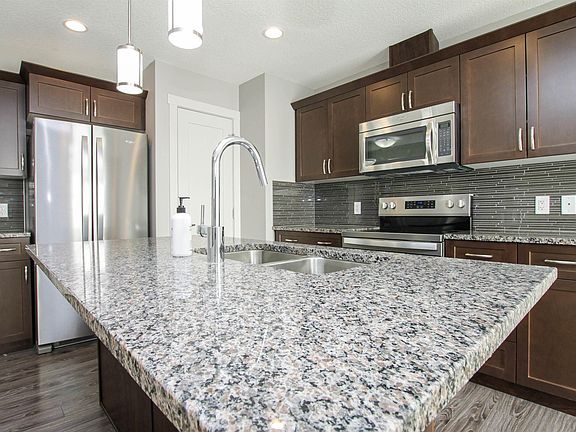 Shows just like BRAND NEW!!!! Located in desirable Aspen Trails, this 3 bed / 2.5 bath half-duplex is in a wonderful community, steps to Abbey Park and close to all amenities. Recent updates include NEW CARPET, FRESHLY PAINTED top to bottom & NEW FRIDGE & STOVE. The main floor offers an open floor plan with modern kitchen with large GRANITE island, stainless steel appliances and pantry. Beyond the kitchen is the spacious eating nook, overlooking the SOUTH-FACING backyard!! Backyard offers nice sized deck and fire pit area! The cozy living room offers beautiful stone-faced GAS FIREPLACE, perfect for our cooler seasons. Upstairs you will find the primary suite with 4-piece ensuite and walk-in closet, 2 more spacious bedrooms, 4-piece main bath, UPSTAIRS LAUNDRY + den/flex space! The basement is a perfect canvas to develop, with drywall and some electrical already in place. This property also has CENTRAL A/C and a full sized DOUBLE ATTACHED GARAGE! Meticulously maintained and completely MOVE-IN READY!