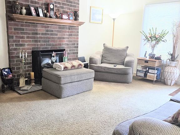 The cozy living room features a wood-burning fireplace, perfect for relaxing evenings. The EAT-IN kitchen includes ample cabinet space and all appliances — plus easy access to a private back patio with peaceful views of the surrounding woods. Rd