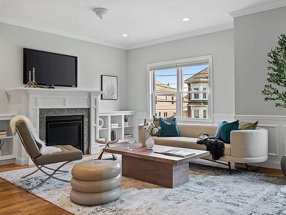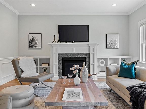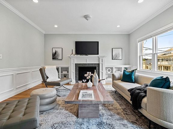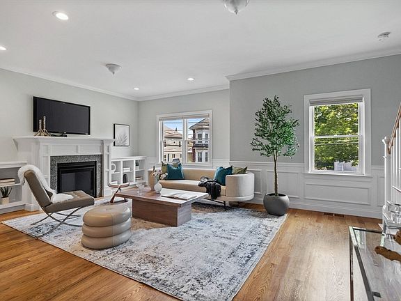 This 2020 construction townhouse offers over 3,100 sqft across 3 levels in a well-maintained 2-unit association—an ideal single-family alternative. The entry foyer features ample storage and built-ins, leading to a garage and a bonus room with en-suite bath, perfect as a family room or 4th bedroom. The main level offers a spacious living room with fireplace, built-ins and wainscoting, an oversized white shaker kitchen with gas cooking and large island, a separate dining area, and a 1/2 ba and laundry. Sliding doors lead to the rear deck which overlooks the large, private fenced-in yard. The top floor boasts 3 bedrooms, including a king-sized primary with a large walk-in closet and luxurious en-suite bath w/double vanities and walk-in shower. Additional highlights include dual-zone HVAC, hardwood floors, lots of storage, plus a private driveway and 1-car garage with Tesla charger & epoxy floor. Conveniently located near Moody St shops and restaurants, commuter rail, and major highways.