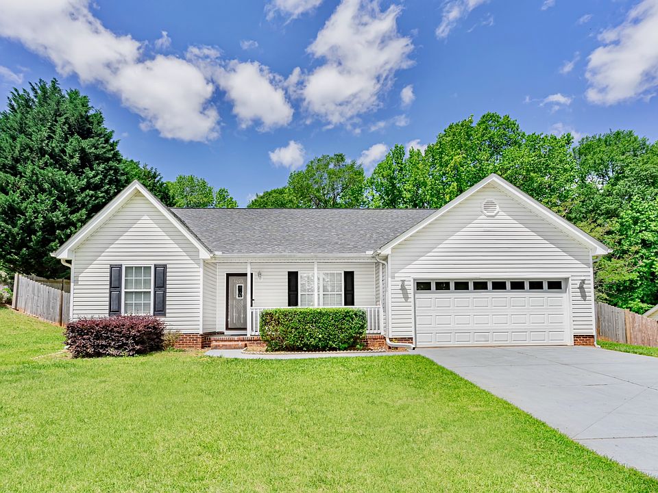 Great Home in Greer with Lawncare Included! Single Story 3 Bedroom, 2 Bath House with a Large Private Fenced In Backyard and many recent upgrades in a great location. Convenient to Downtown Greer, Greenville, Spartanburg, Wade Hampton Blvd. BMW, GSP International Airport, Michelin, and nearby golf, entertainment, shopping and dining. House sits on a 1/2 acre plus lot on a quiet cul-de-sac street. Home updates completed in 2022 include new quartz countertops and sinks in both bathrooms, new toilets, new kitchen faucet, new disposal, new flooring in office, new carpet in master bedroom, dressing area, walk-in master closet, and guest bedroom, and installation of gutter protection system. Home updates in 2021 include new kitchen countertops and appliances (oven, microwave, fridge, washer and dryer). Large patio is perfect for relaxing, entertaining, and grilling out. Fire Pit and Peach Trees in the Backyard! 2 Car Garage. Washer and Dryer included! Lawncare Included! Great place to call home!