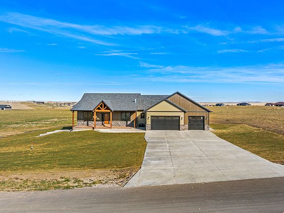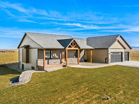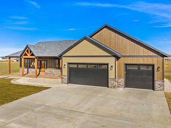 BEAUTIFUL NEW CONSTRUCTION IN FOOTHILLS SUBDIVISION! Built in 2025, this home sits on 2.4 acres with stunning mountain views. The main floor features an open-concept design with vaulted ceilings, a gas fireplace, and dining area with slider to the back patio. The kitchen includes tile backsplash, large island, and walk-in pantry. The luxurious primary suite offers a walk-in closet, trey ceilings with lighting, and spa-like bath with double sinks, soaking tub, tile shower, and private toilet room. Two additional bedrooms and a full bath complete the main level along with a drop zone and laundry off the heated, finished 3-car garage. The fully finished lower level includes a spacious family/rec room, one bedroom, office/hobby room, and utility area. Freshly sodded yard with curbing and underground sprinklers make this home move-in ready!