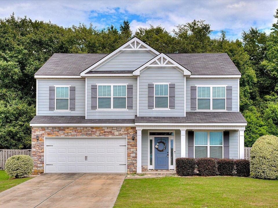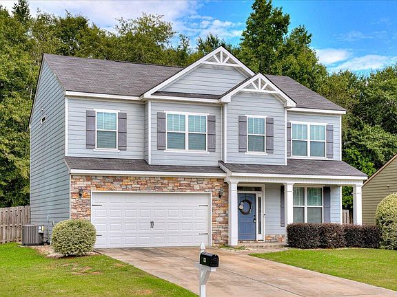 This home is vacant and move in ready. Its located just minutes from Ft. Gordon. When you enter the home, you see the formal dining room that could also be used as an office. You continue to the large great room that opens to the spacious kitchen and breakfast area. The kitchen is lined with white cabinets and granite countertops. It features stainless steel appliances and a large pantry. There is a half bath located on main. A patio door off the breakfast area leads you into the fenced backyard that backs up to green space. The fence has a double gate large enough to back a boat or trailer. All 4 spacious bedrooms have ceiling fans and are located upstairs. The master bedroom includes a 9x10 sitting area. The masters ensuite bath features a garden tub, walk in shower, a dual vanity and large walk-in-closet.