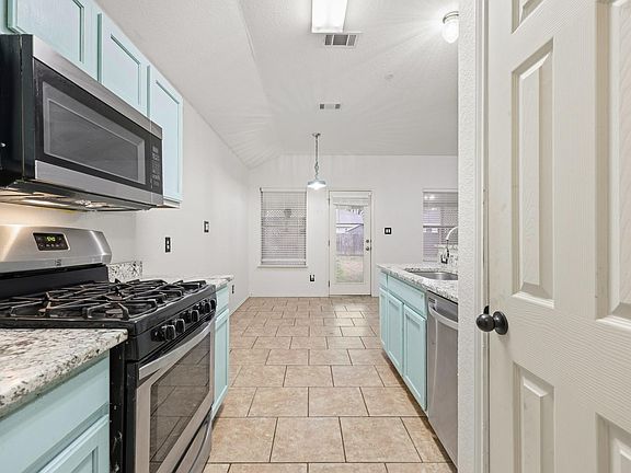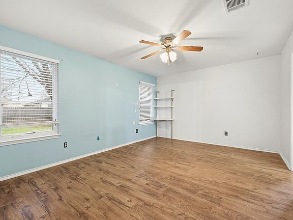 Discover this versatile Elgin home, perfectly designed for comfort, convenience, and everyday living. Low maintenance flooring flows through the main areas, while a bonus space with built in shelving offers endless possibilities for a craft room, home office, or extra storage. The kitchen features sleek granite countertops and a pantry for added organization, with all major appliances included except the refrigerator. Relax or entertain on the covered back porch overlooking the spacious fenced backyard, and enjoy the energy savings from the home’s solar panels. Windows have been replaced throughout the home, except the living room, with Anderson windows and a transferable warranty. Both bathrooms have been renovated, and the HVAC and roof are under five years old. The primary suite is a serene retreat, boasting updated dual vanities, modern cabinetry, a tiled shower with sliding glass doors, and a spacious closet with a built in system for maximum organization. Generously sized secondary bedrooms with ceiling fans ensure comfort throughout. Ideally situated near Hwy 290, shopping, dining, and local amenities, this move in ready home provides access to all three schools, flows to ACC community college, and offers nearby greenbelt access and a soccer field—combining practical living with lifestyle appeal in a growing Elgin community. Discounted rate options and no lender fee future refinancing may be available for qualified buyers of this home.