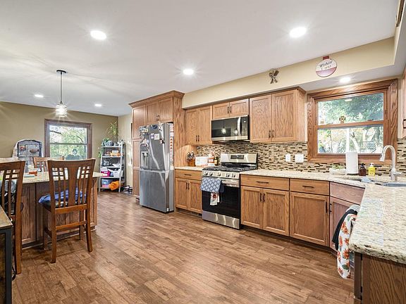 Move-in-ready 4 bedroom, 2.5 bath home on a spacious corner lot in a quiet cul-de-sac. The bright living and formal dining room combo flows into a cozy family room with a gas fireplace and patio doors leading to a large, freshly refinished tiered deck--perfect for entertaining or relaxing. Newly updated kitchen (2024) offers plenty of cabinetry and stainless steel appliances. Updates include triple-pane windows (2014), energy-efficient Craneboard solid siding (2017), New driveway (2024) newer A/C, roof, and water heater, refinished kitchen flooring, can lighting in both family rooms, and freshly painted main floor. Heated 2.5-car garage, finished lower-level rec room, and ample storage throughout. Well-maintained and ready for new owners to enjoy!