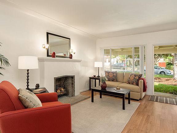 This 2 BD, 1BA North San Gabriel home features great curb appeal, as one takes in the adorable red front door & magnolia tree in the front yard. Upon entering, the home features laminate wood floors in the living room & dining room, which make a lovely compliment to the gas fireplace & picturesque window in the living room. The dining area has a ceiling fan & a wood & glass door, facilitating a view to the backyard. The front bedroom is graced by a bay window which looks out to the magnolia tree in the front yard, as well as a closet with mirrored door, carpeting, the same coved ceilings found throughout the home & an addtl window for ample light. The bathroom has a walk-in shower & is designed to facilitate easy access for people with disabilities. The 2nd bedroom is carpeted, has a ceiling fan & 2 windows. The kitchen has scalloped wooden cabinets, a bay window over the sink, & a gas stove. The adjacent room can easily be used as an office. The fenced backyard has a partially sheltered concrete patio, as well as a grassy area. Addt'l features include a Whirlpool Duet washer & dryer in the garage, a sprinkler system, a commercial grade fire system, central HVAC & central heat in the garage. Don't miss your chance to own this charming San Gabriel home!