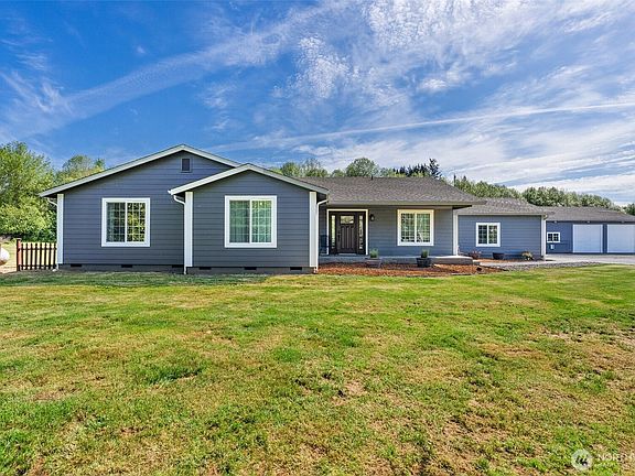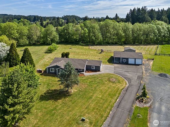 Well-maintained 3-bedroom, 2.5-bath home on 2.9 acres in the peaceful Chehalis/Adna area. The open layout features an updated kitchen with solid surface countertops, an island, and stainless steel appliances. The primary bedroom is a true retreat, with an en-suite bath featuring a walk-in shower and a large walk-in closet. There’s also a flexible office space, currently used as a sewing room, that could work for whatever you need. The spacious back patio is perfect for relaxing or entertaining, and the large backyard is ready for whatever you want to do. The property also has a 2-car garage, a huge 48x48 shop with RV parking, and a 2-stall barn—plenty of space for animals, hobbies, or storing your boat or RV.