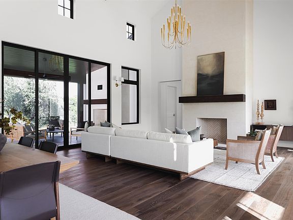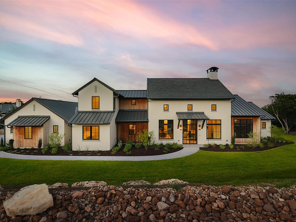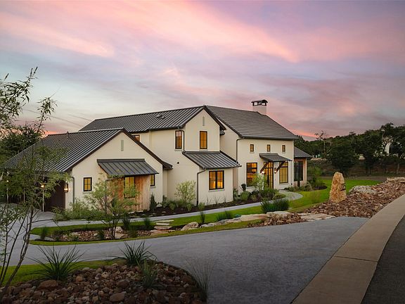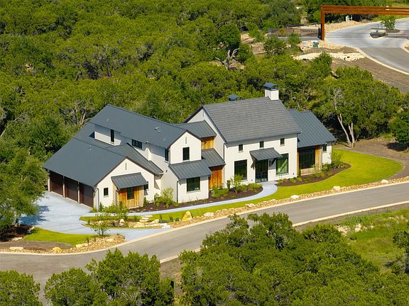 Set on a 1.06-acre cul-de-sac lot backing to a greenbelt, 125 Broadwing Cove is a custom-crafted collaboration by Geschke Group Architects and Kirby Walls Custom Builders, delivering architectural pedigree and modern livability in perfect balance. This newly constructed 5-bedroom, 4.5-bathroom estate spans 4,405 square feet of finely appointed interiors and showcases a flexible, light-filled floorplan designed for both elevated entertaining and daily comfort. The main level features the primary suite and a private guest suite with its own living quarters, as well as a dedicated home office, formal dining, and a game/media room — all anchored by a soaring great room and a chef-inspired kitchen. The gourmet kitchen stuns with high-end appointments including the Bertazzoni Heritage Collection range, stainless steel appliances, a spacious center island, custom lighting, quartzite countertops, and a hidden butler’s pantry with soapstone surfaces and Sub-Zero wine storage. Walk-in closets, a spa-inspired ensuite with a concrete soaking tub, smart glass, and limestone surround elevate the primary retreat to sanctuary status. Outside, the Hill Country lifestyle unfolds in full. Entertain under the stars at the outdoor kitchen complete with Blaze appliances and leathered Black Forest quartz countertops, or relax poolside in the saltwater pool and spa combo. The covered patio and rear porch overlook a landscaped yard with mature trees, native plantings, and wrought-iron fencing. Crafted with premium materials and long-term sustainability in mind: Kebony wood siding, a concrete tile and standing seam metal roof, Garapa decking, spray foam insulation, tankless water heater, and whole-house propane generator (1,000-gal tank) are just a few of the many enhancements. The oversized 3-car side-entry garage features insulated side-openers, epoxy floors, and is prepped for EV charging. There’s even room to add a permitted 1BD/1BA casita post-close.