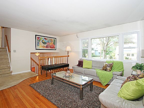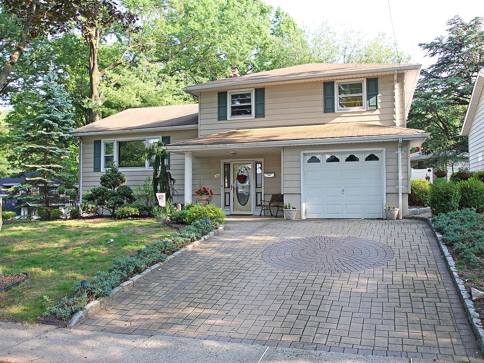 Spacious split with open floor plan 3 bedrooms, 2.1 full baths on a corner lot. hardwood floors, eat in kitchen, family room plus finished basement, great large deck and patio, fenced yard -WOW! Gracious and open this lovely split level home is ready to move in. newly painted home has no step entry, 4th bedroom has been opened to enlarge family room but can be restored as a 4th bedroom if needed. Both kitchen and family room open to rear yard with large deck and separate patio, storage shed all fully fenced. Master bedroom with full bath, large second bath with tub shower and half bath and laundry on family room level. Lovely tree lined street in Oak View neighborhood, easy commute to NYC and accessible to highways. Oversize corner property and over 1800 square feet of living space! FP decorative only