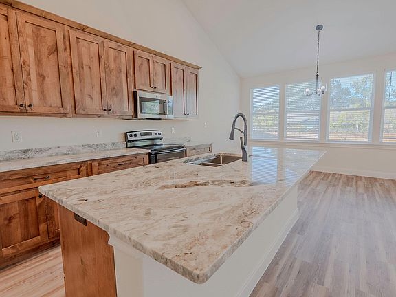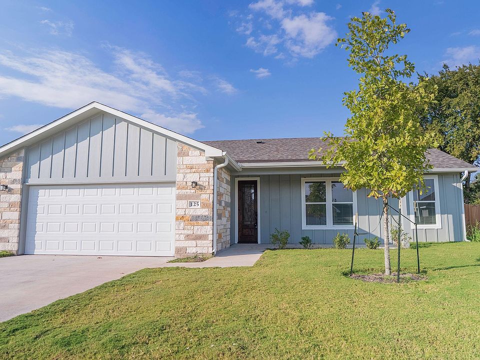Welcome to one of Smithville’s newest and most carefully designed homes. This brand new 1,858 square foot home sits on nearly a quarter acre and combines quality construction, timeless design, and small town Texas charm. With only thirty homes in this peaceful community, you’ll enjoy the comfort of a close knit neighborhood with curbs, sidewalks, and street lighting just forty miles southeast of Austin. From the moment you walk in, you’ll notice the bright and open floor plan featuring ten foot ceilings, eight foot doors, and luxury vinyl plank flooring throughout with no carpet anywhere. The spacious living area flows seamlessly into a designer kitchen that showcases a large quartz island, deep stainless sink, and a full suite of stainless steel appliances. An oversized butler’s pantry with built in shelving provides both functionality and elegance. This flexible layout offers three bedrooms and three full bathrooms including a front bedroom with its own ensuite bath that’s perfect for guests, family, or use as a home office. The primary suite is a private retreat featuring large windows, recessed lighting, a soaking tub, walk in shower, dual quartz vanities, and a massive eight by twelve walk in closet with custom built ins. Every element was designed for efficiency and comfort from full foam insulation and circulating hot water to the insulated two car garage with opener. Step outside to enjoy covered front and back porches, a fully sodded yard with an automatic irrigation system, and plenty of space for outdoor relaxation. With city utilities, Spectrum high speed internet, and a one two ten builder’s warranty included, this home offers peace of mind and modern living wrapped in small town warmth. Experience the beauty, craftsmanship, and lifestyle of 125 Callie Street where modern comfort meets Smithville’s historic charm.