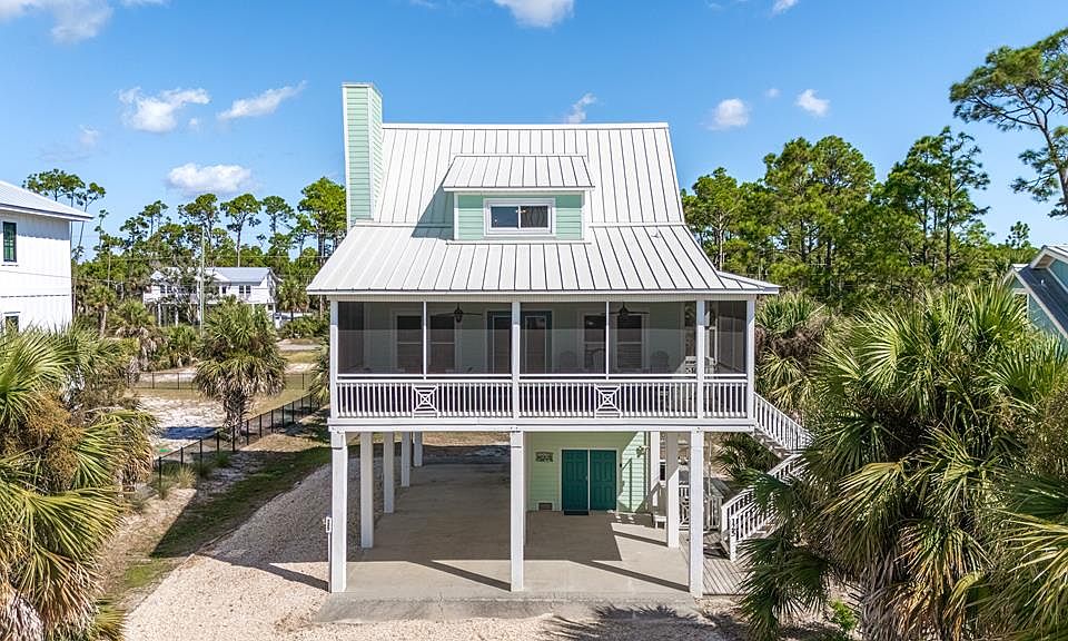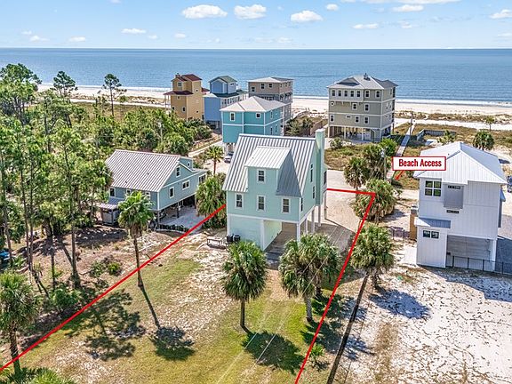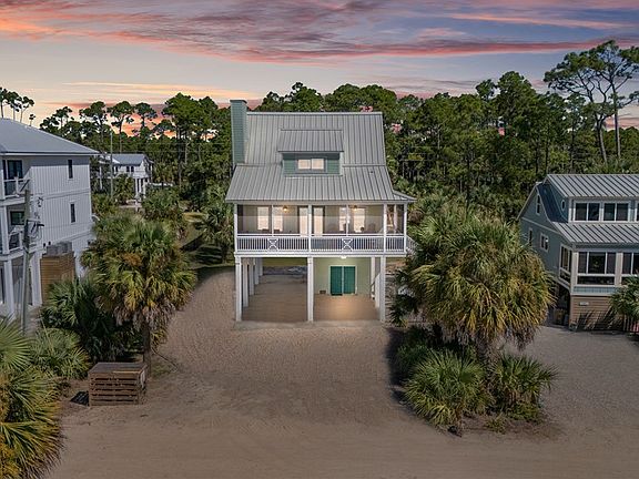 Outstanding Gulf views from this recently improved 3 bedroom, 3 full bathroom first tier home in an Old Florida setting with easy beach access. This elevated home is well-appointed with an expansive screened porch facing the Gulf, an exterior cargo lift, and plenty of room for larger boat or RV covered parking under the home. The living room features high, beamed ceilings with plenty of natural light from the custom windows with plantation shutters and a fireplace. The large 75' wide property measures just under a half acre with FEMA eligibility and could support a pool and/or guest house addition on the back of the property. The ground level storage and workshop area includes a full bathroom along with a separate outdoor shower and fish cleaning station. Great location just off CR 30-A between Cape San Blas and Indian Pass, conveniently close to the charming coastal towns of Apalachicola and Port St. Joe, and right down the road from the Indian Pass Raw Bar and public boat ramp. The deeded beach access boardwalk is directly in front of the home, very short and convenient walk to the unspoiled beaches of Indian Pass and CR 30-A, and there is a public boat ramp less than 3 miles away down Indian Pass Road.