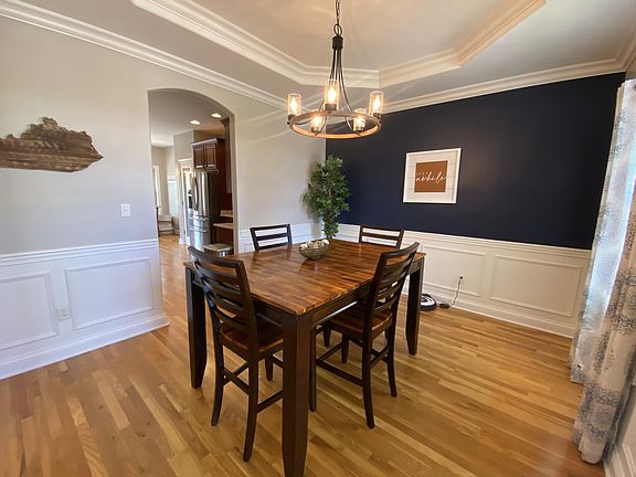 This immaculate 6 bedroom home is on one of the largest lots in Cherry Blossom. The first floor features a spacious bedroom, custom moldings, hardwood flooring and soaring ceilings, It also offers a beautiful kitchen with double ovens, granite, back splash & rich cabinetry, a nice dining room and formal living room with a tray ceiling. Upstairs boasts a huge primary suite with a double tray ceiling and an exquisite master bath, plus 3 large guest rooms and a sunny laundry room. The finished lower level offers a large family room, bedroom & bath and plenty of unfinished storage space. The rear entry garage is complete with custom floor tiles. The huge flat back yard is fenced and has a spacious deck with a pergola, basketball goal and trees. This stunning home is great for entertaining and is sure to please any family.