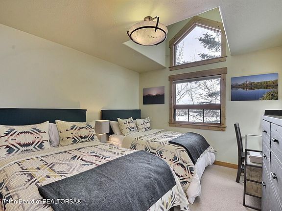There is so much to appreciate in this immaculately maintained Mountain Meadows home in Teton Springs. The expansive southern exposure provides light and bright spaces throughout and breathtaking views of Targhee National Forest and the abundant, mature landscaping in the yard and adjacent, maintained open space. This open Lupine floor plan features a vaulted great room, floor-to-ceiling gas fireplace, 3 bedrooms, 3.5 baths and an attached 2-car garage. Upstairs, a thoughtful design includes the laundry area which separates the two guest suites from a private and generous south facing master suite with his and her closets and a jetted tub. A very quiet and convenient location within walking distance to community amenities.