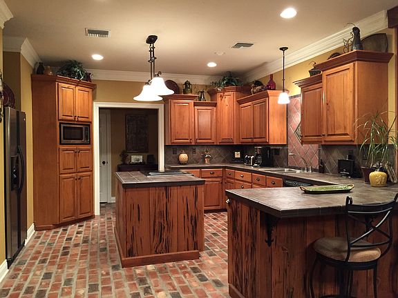 Country feel with city convenience! Located just 3 miles from I-10 and 20 minutes from Lafayette, this beautiful, well-maintained, 4 bedroom, 2.5 bath, brick home is custom-built and located in a quiet neighborhood on approximately 5 acres. The split floor plan features a spacious Master Suite on one side of the home, with a Master Bath having his/her sinks, a separate custom tile shower, antique claw foot tub, built-in cabinets, and a spacious walk-in closet. Bedrooms #2 and #3 are located on the opposite side of the home and connect each other with a Jack-and-Jill bathroom. Bedroom #4, which can also be used as a personal office, is located near the Master bedroom. The home has an open floor plan with a large Kitchen that opens to the dining and living room areas. The Kitchen features custom cabinets, under-counter lighting, cooking island, breakfast bar, spacious walk-in pantry, and brick floors throughout. The Living Room opens up to cathedral ceilings, wood burning brick fireplace, a built-in entertainment center, and outside access to the large outdoor porch with ceiling fans, landscaping and an additional Patio area for cooking. The 2 car carport will accommodate the largest of vehicles and contains a storage room great for a freezer or refrigerator along with plenty of storage for seasonal items. Extending from the main driveway is a 30 x 30 metal shop with a concrete slab, camper hookup, electricity, 1 door entry, and 2 roll up doors. This home mixes old, rustic and modern with many beautiful extras. For instance, all cabinets within home were constructed of cypress wood from a 99 year old cotton gin barn. 9' ceilings are adorned with triple crown molding in main living areas, and crown molding in all other rooms. Walk in closets in all bedrooms. This home was constructed with all solid walls and ceilings, as well as a post-tension slab for extra stability and strength. All window treatments and kitchen appliances stay in the home. The home is wired with a security system and is cable ready. Move-in ready and built to last!